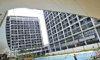 富士康安排記者參觀的宿舍,猶如港式豪宅,設有標準泳池,有員工透露這是高級職員宿舍。(圖:香港明報)