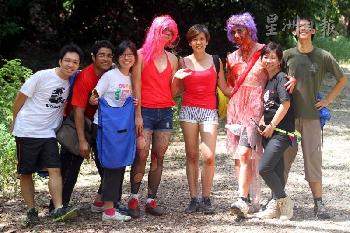 其中有一名女義工以一支箭作為頭飾,看似其頭顱中了箭,並穿上血淋淋的破衣服,裝扮嚇人。這些殭屍的任務是追逐參賽者,並在參賽者到達終點前取走他們身上的標籤。“殭屍競賽”較早已紅遍美國等國家。(馬來西亞星洲日報)