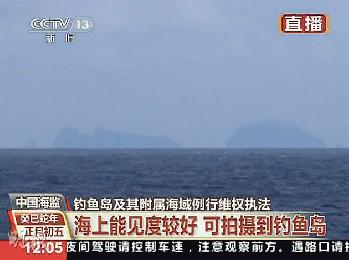 在記者指示中,畫面上遠處出現釣魚島主島及其附屬的南小島的朦朧輪廓。季熠非介紹了釣魚島的基本情況,稱這片6.3平方公里的群島自古就是中國的領土。他說,這是央視首次近距離直播釣魚島的實況畫面,為了今次直播,他們攜帶了海事衛星及便攜式移動衛星通訊終端,以便觀眾可以實時看到釣魚島的情況。他還說,維權巡航任務會持續一段時間,今後幾天不排除從更近距離向觀眾展示更清晰的釣魚島畫面。