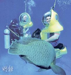 每天準時報到的大蘇眉,在海上平台旁邊的浮潛區與泳客暢泳。(圖:香港明報)