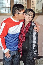 嘉樂仔12日午2時陪老婆見記者,笑到見牙不見眼的錢嘉樂,四度吻盈盈面臉頰,因懷孕暴肥60磅的盈盈精神奕奕健步如飛,但產後肚子仍十分大,猶如懷胎6、7月般,難怪嘉樂仔取笑老婆:“可能還有個男孩在肚子裡!”