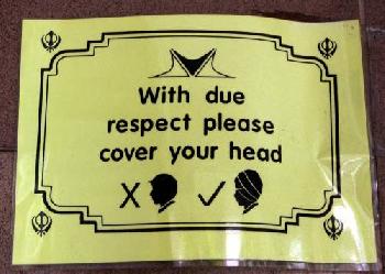 進入錫克廟之前,不論男女者都是須在頭上圍起一塊布,接著洗淨手腳後,才可進入朝拜。
