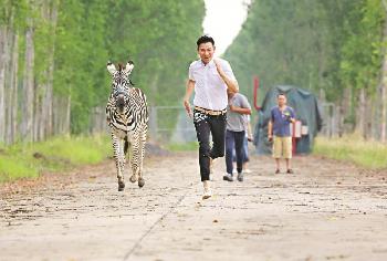 今次跟華仔合作的女配角是一隻斑馬小姐,牠住在距離拍攝地點需要5小時車程的動物園。由於斑馬小姐害羞,很怕跟人類接觸,所以一個月前動物園應攝製隊要求,為斑馬小姐進行一連串“熟習人類”課程;但開始拍攝時,斑馬小姐跟華仔仍有一點生疏。其後相處數小時,斑馬小姐被華仔吸引,不自覺跟著華仔到處走,還偶爾見到華仔與斑馬小姐賽跑的場面,工作人員捧腹大笑。不過,斑馬小姐沒有拍攝經驗常有失控情況,要戴上度身訂做的藍色籠頭,牠便知道在工作乖乖合作。(香港明報)