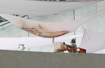 死者從59樓陽台墜下,撞穿5樓的玻璃遮板,卡在鐵架上!目擊者說,事發時,一名值晚班的酒店員工在2樓大廳打掃,聽到上面傳來玻璃碎裂的聲音,抬頭一看,赫然發現死者卡在大廳上端的鐵架上。