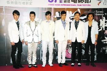 (香港)鄭少秋(秋官)、鄭伊健、林峯、周渝民(仔仔)、於波等3月28日晚出席電影《忠烈楊家將》全球首映禮,一眾型男演員換上西裝骨骨的造型現身。林峯跟秋官的歌迷列隊舉牌支持偶像,沒想到秋官的師奶粉絲比林峯的更勝一籌,秋官笑言要派喉糖給粉絲作慰勞。