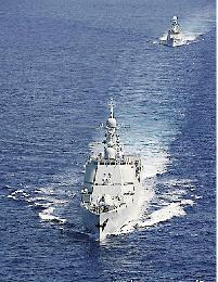 由南海艦隊052C型防空驅逐艦“蘭州號”和最新型的054A型導彈護衛艦“衡水號”組成的遠海訓練編隊,16日晚穿越宮古海峽駛入釣魚島附近海域。據“蘭州號”上的央視記者報導,17日上午,兩艦組成單縱隊在距離釣魚島約70海里的海域巡航並演練,附近海域海良好。