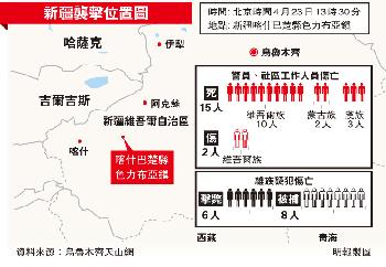 (中國)新疆喀什巴楚縣4月22日發生恐怖襲擊事件,3名社區工作人員巡查民居時,發現有可疑人員和管制刀具,向上級匯報後,卻被屋內歹徒扣留和殺死,警察和社區幹部份頭前往處理時也先後被殺死15人,增援的公安後來擊斃6名歹徒,拘捕另外8人。新疆當局指出,這一集團曾觀看境外暴力恐怖視頻,武器是自製的長1.2米大砍刀。