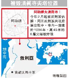(敘利亞)敘利亞內戰持續,戰火危及被列世界遺產的北部阿勒頗古城,當地一座有千年歷史的清真寺週三在交戰中遭炮轟,寺內一座建於11世紀的45米尖塔被炸毀。歷史專家形容這是文物災難,“猶如印度泰姬陵被炸”,交戰雙方則互相指摘破壞是對方所為。
