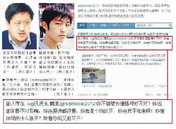 中國勞動關係學院學生關凱元在帖文下留言稱,這首詩“確實格律不對,就算不嚴格按照古人韻腳,好歹孤仄孤平不該犯”。不料孔慶東即時回罵,“你不要裝作懂格律好不好?你說的驢唇不對馬嘴,你連原詩都沒看,你就是個狗漢奸,你當我不知道啊!你懂你媽的什麼孤平?我看你媽又孤又平!”