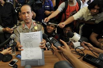 國警總部公關處公共信息事務主任博伊向媒體闡述警方逮捕與殲滅恐嫌的行動。(圖:印尼星洲日報)