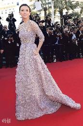 選了淺紫灰色Elie Saab長裙的章子怡前晚連趕兩場,既要出席一種關注單元的頒獎禮,又要捧波蘭斯基場,忙得沒時間換衣服,但仍停下接受內地傳媒訪問,並再次讚劉嘉玲在《過界》表現出色。。 (資料圖片)(圖:香港明報)