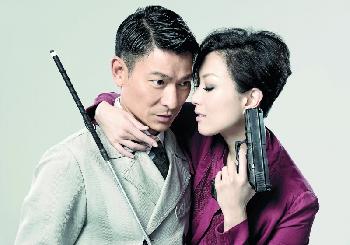 劉德華與Sammi換了多個造型,Sammi拿著手鎗,一副幹探模樣,非常有型。(香港明報)