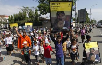 (柬埔寨)趁國際兒童節,逾百名的萬谷湖社區孩子們上街遊行,要求釋放萬谷湖居民主要代表顏波帕,並呼吁政府真正落實《兒童權利公約》。