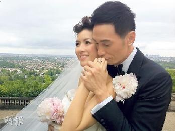 42歲的陳豪與32歲陳茵媺拍拖兩年多,昨天在法國巴黎結婚,陳豪情深一吻,就知他有幾深愛太太了。圖:香港明報)
