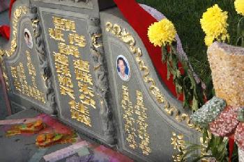 朱氏夫婦墳前擺著一些拜祭品, 以鮮花凋零程度看來, 像是幾天前才擺放在該處的。(圖:大馬光明日報)