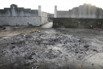 朱父山墳不遠處有焚燒冥紙元寶的灰燼。(圖:大馬光明日報)