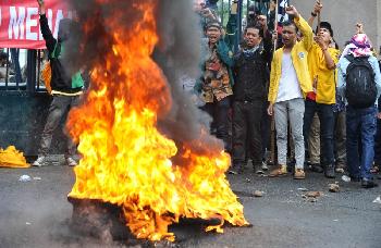 在蘇拉威西島望加錫市,約有500名大學學生和教師抗議,他們焚燒輪胎並大喊“革命”。(馬來西亞星洲日報)