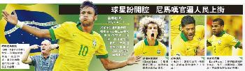 (巴西)席捲巴西的抗議政府示威浪潮愈演愈烈,並有威脅正在該國舉行的洲際國家杯足球賽之勢,當局派出精銳部隊到5個賽場城市,以確保比賽順利進行。巴西國家隊多名重量級成員開腔力撐示威者,部份還抨擊政府,包括教練史高拉利和近期光芒四射的球星尼馬。