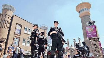 (中國)新疆警方昨日宣佈,發生於6月26日的鄯善縣恐襲事件最後一名逃犯被捕,全案告破。新疆公安機關又查處了19名被指在網上編造謠言者,分別予以行政拘留並處罰款。奉中央政法委書記孟建柱之命,武警昨起在新疆各地24小時巡邏。當地網民對本報透露,巡邏的部份武警由外省調入。孟建柱等人昨日更到南疆視察。