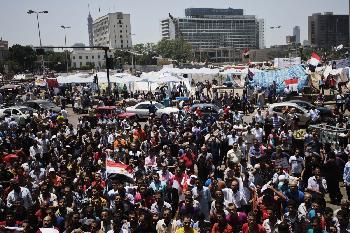 反對派以經濟欠佳、擔心社會伊斯蘭化為由,號召群眾週日下午5時(香港時間週日深夜11時)遊行前往總統府,與在附近舉行撐政府集會的民眾狹路相逢。開羅解放廣場昨早已有大批群眾聚集高呼“穆爾西下台!”示威者揮舞“紅牌”,吹奏南非民族樂器vuvuzela和口哨,寓意把穆爾西逐出場。一名來自北部城市達米埃塔的木匠說:“這是第二次革命,解放廣場正是革命的象徵”。