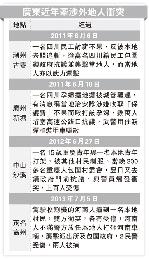 高州警方昨日通報,當地石鼓鎮祥山塘陂村委會白坭村前日發生一宗群體事件。事發在早上11時許,幾名受僱的外省籍人士駕駛收割機收割時,撞傷了一名當地村民,又不肯送傷者到醫院治療,遂引發衝突,雙方各有人受傷,有外省籍車輛損。下午5時許,涉事的外省籍人士叫來40多名同鄉,又出動30多輛車包圍祥山派出所,3小時後突然持鐵棍闖入內,打爛辦公桌和電腦,打傷並強行帶走兩名值班民警。高州警方當晚9時許截獲有關人士,解救兩名民警,拘捕兩名外省籍人士。