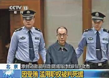 (中國)原鐵道部長劉志軍受賄案昨日在北京市第二中級人民法院一審宣判,法官判劉受賄、濫用職權罪名成立,判處死刑、緩期2年執行,沒收個人全部財產。法官事後對新華社解釋不判劉立即執行死刑的原因,又澄清早前有報導指司法機關凍結了374套房產,是劉志軍濫用職權令山西女商人丁羽心等人所獲,並非劉志軍犯罪所得。