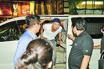 剛榮升爸爸的HaHa滿面笑容去打邊爐。(圖:香港明報)