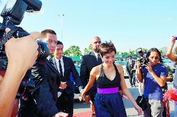 一對新人在當地警方及保安維持秩序下,走過紅地氈準備進入酒樓時,陳豪身穿深色禮服,陳茵媺穿上深紫色露肩晚裝,裙尾拖地,只見小腹微隆,記者紛擁上前追訪拍照。兩人正進入酒家時,一向與傳媒關係良好的陳豪不但自己停步,更拖著陳茵媺回頭讓記者拍照,對記者的提問只笑答謝謝。而陳茵媺就一直甜笑不語,頓成背後的女人。有記者要求兩人咀嘴,陳豪本欲應大家要求擁抱太太,但Aimee即笑對記者說:“謝謝!謝謝!”就攜手入場。未幾新外父到臨,未有回答問題,只謝謝傳媒朋友及祝一對新人幸福快樂。