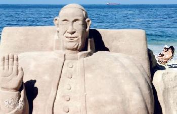 (巴西)巴西一班沙藝專家鑑於教宗方濟(Pope Francis)快將造訪,為免“有辱斯文”,紛紛主動費神地給海灘上姿態婀娜的女性沙雕塑像“添衣”。