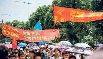 (中國)廣州花都區再爆發上萬民眾示威,抗議政府計劃在此區獅嶺鎮興建垃圾焚化廠。示威者拉橫額高呼口號,昨午從花都區政府出發,遊行經過市區內主要街道後,下午返回區政府門口靜坐,沿途大批市民加入遊行。上千警察戒備,傍晚清場時,雙方一度發生衝突,多人受傷。有示威者表示,將會繼續抗爭。