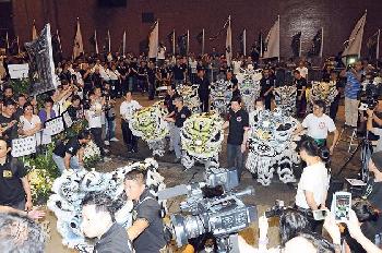 九大門派、屬會的素獅逐一進入靈堂叩首,場面莊嚴肅穆。(圖:香港明報)