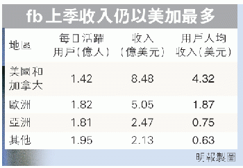 同時,fb在各地區的廣告收入增長均逾50%,整體付費及其他服務費收入(包括遊戲收入)達2.14億美元,較2012年同期升11%。