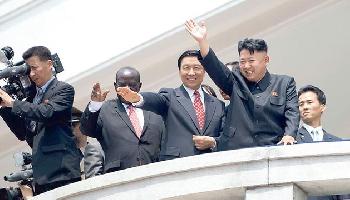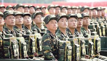 (朝鮮)朝鮮(朝鮮)領袖金正恩昨日偕中國國家副主席李源潮,出席紀念韓戰休戰60週年大閱兵。這20年來首次的“勝戰日”閱兵,展示了逾300款軍事裝備,出動的官兵人數超過1萬,規模雖遜於去年金日成冥壽紀念閱兵,軍備亦未見有新型號,但在檢閱行列間卻出現了一支神秘部隊,胸前掛了個擁有大大輻射標誌的背囊,被指是平壤政府要表明發展核武的意圖。