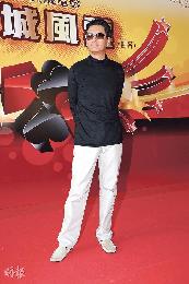 身形結實的周潤發戴上墨鏡,單是站起來已台型氣勢十足。(圖:香港明報)