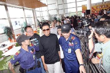 貴為好萊塢巨星的周潤發踏足將軍澳電視城,獲安排星級排場,保安沿途護送。(圖:香港明報)