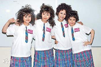 李麗珍、李若彤、張慧儀、葉蘊儀昨日以爆炸頭配學生妹造型,於電視城拍攝《M Club》,眾女在鏡頭前“賣萌”擺出勝利V字手勢。李若彤重拾學生情懷顯得很開心,她除了私下拍照留念,也不想脫掉校服。