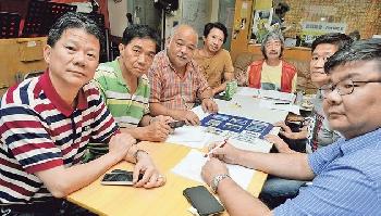 保釣行動委員會前晚開會商討出海再闖釣魚島行動,召集人兼啟豐二號船主羅堪就(右三)、成員曾健成(左三)、麥國風(左一)、古桂耀(右一)等出席會議,該會計劃今日會交代詳情。(圖:香港明報)