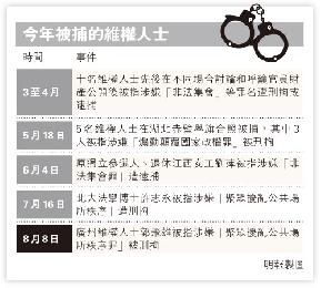 (中國)繼北京維權律師許志永被刑拘後,居於廣州的著名維權人士郭飛雄,昨證實被警方以涉嫌“聚眾擾亂公共場所秩序罪”為由刑拘。其代理律師指出,郭在廣東民運圈子中威望較高,當局此舉明顯是延續全國“斬首行動”邏輯,相信與郭聯署支持官員財產公開等有關。有異見作家指出,這亦體現了當局今年嚴打政治活動街頭化、組織化。