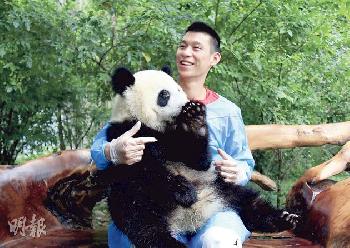 (中國)效力NBA火箭隊的華裔球星林書豪8月29日參觀四川成都大熊貓繁育研究基地,不但宣揚環保及保護動物意識,還與國寶大熊貓零距離親密接觸。