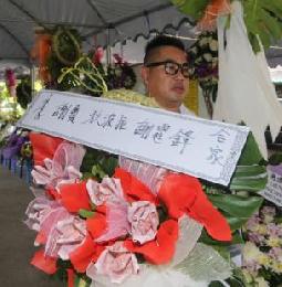 謝賢一家花圈沒張柏芝名:篤信白龍王的謝賢與狄波拉,與兒子謝霆鋒聯名送上現金花圈給白龍王,唯獨沒有張柏芝的名字。(圖:星洲日報)