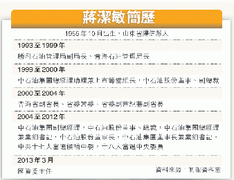 新華網昨晨約11時報導有關消息,震撼中外。由於現年57歲的蔣潔敏在石油系統工作逾四分之一世紀,同時又於去年底舉行的中共18大上當選中央委員,被視為近年勢力急劇膨脹的“石油幫”的重要台前人物,其“突然”倒台,引發海內外輿論廣泛注視,關注蔣潔敏會否成為扳倒近日外傳正接受調查的“石油幫”大佬、中央政治局前常委周永康的突破口。