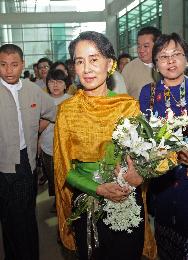 緬甸反對黨全國民主聯盟領袖昂山舒吉應新加坡政府的邀請,9月20日早上出發前往新國進行5天的訪問,這也是舒吉首次出訪新加坡。(圖:法新社)