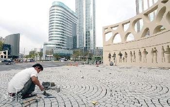 外高橋保稅區2號門正密鑼緊鼓翻新中,有裝修工人表示,收到通知須在本周四(26日)前完成工程。(圖:香港明報)