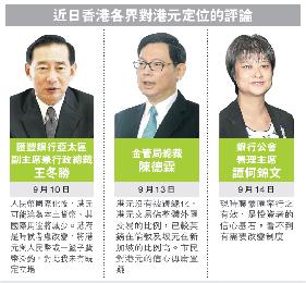 對於石建勛的“放棄港元”建議,上海社科院港澳研究中心主任尤文山對本報表示這不現實亦不可能,“港元是香港的法定貨幣,已在《基本法》寫明,若要放棄港元,則需修改《基本法》,可能性不大”。他並指出,目前人民幣仍是不可兌換的貨幣,也不適合香港作為一個自由港應發揮的經濟職能。