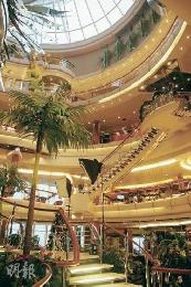 從大堂看上去與一般華麗酒店無異,只是將地上的五星酒店搬到海上而已。 (圖:大馬星洲日報)