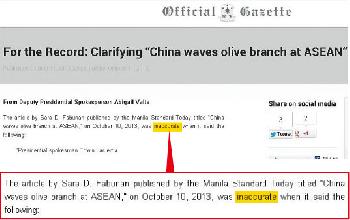 Abigail Valte在聲明中指出,當地報章Manila Standard Today的文章對Edwin Lacierda的說話引述不準確。聲明指出,文章寫Edwin Lacierda稱阿基諾三世與梁振英均同意將人質事件放下(put the issue behind them),但當時其說法應是“我們正在努力,令事件可以放下”(we are working……to put that behind us),這說話的意思是花工夫尋找解決方法,但報章的說法則變成是忘記人質事件,這是不準確。