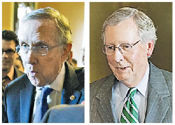 民主黨籍的參院多數黨領袖里德(左圖)和共和黨籍的參院少數黨領袖麥康內爾(右圖),周一放風稱兩黨在債限談判上可能有進展。然而,眾議院共和黨人及後卻提出限制醫保的提案,被里德直斥打擊兩黨合作。(圖:法新社)