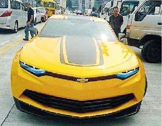 新面貌的大黃蜂跑車停泊在中環蓄勢待發,最搶眼是車頭燈變得更酷。 (圖:香港明報)