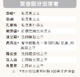 左派網站“中紅網”報導,中國延安精神研究會、北京延安兒女聯誼會等組織18日聯合舉辦紀念毛澤東主席誕辰120周年聯誼會,報導指有300餘名“紅二代”參加。出席者包括毛澤東的女兒李敏、李訥,前總理周恩來侄女周秉德,開國元帥陳毅之子陳昊蘇等人,部份人此前出席過習仲勳誕辰100周年座談會(見表)。