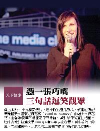 (加拿大)一個舞台、一隻話筒、一個演員清口說笑,帶來歡聲一片——這就是棟篤笑(stand-up comedy)。棟篤笑作為一種藝術形式,在西方已經發展了100多年。棟篤笑在形式上類似於中國傳統的單口相聲,但是在內容上,它更講究演員自創,藝術表達上,則更注重短小精悍。這些要求,讓棟篤笑成為一門精彩紛呈、卻極難掌握的藝術。